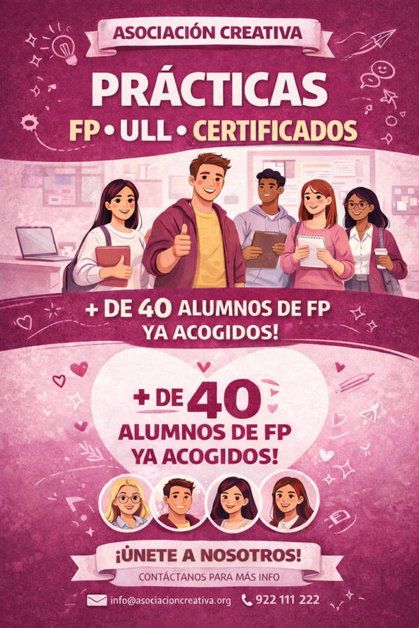 - Convenios de Colaboración: Hemos trabajado estrechamente con las vicedirecciones para asegurar que cada plaza de prácticas cumpla con los requisitos curriculares exigidos por la Consejería de Educación, garantizando que el tiempo del alumno en nuestra entidad sea convalidable y, sobre todo, curricularmente valioso.